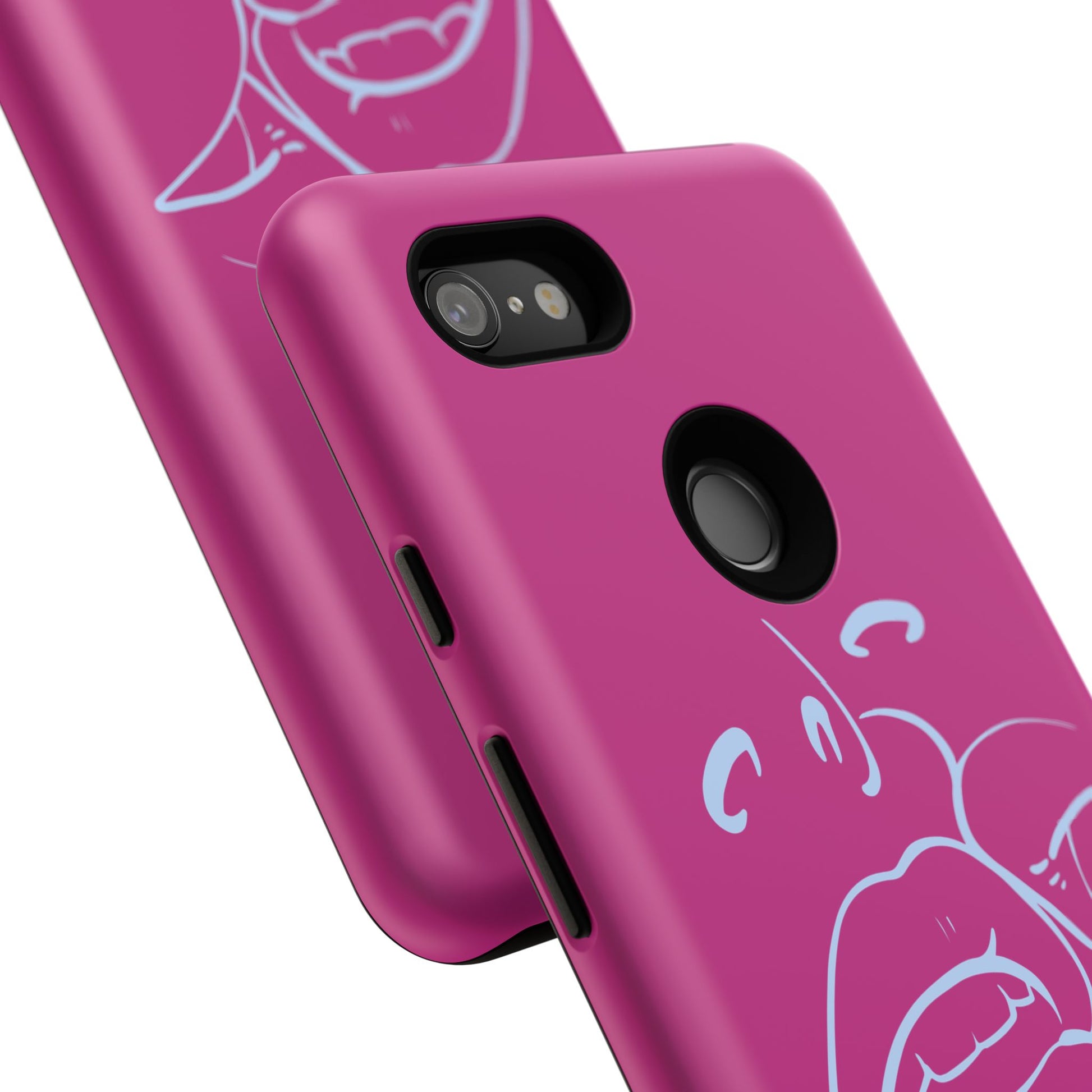 A slim, dual-layer protective phone case with attitude. The rich magenta shell is wrapped edge-to-edge in a 3D ink transfer, featuring a minimal white line-art of parted lips and a playful tongue — bold, flirtatious, and slightly mischievous. Inside, a soft TPU silicone liner cushions shocks while the rigid polycarbonate outer shell resists impacts and outdoor wear. The finish is available in glossy or matte, with clear port openings and wireless charging compatibility so daily life stays effortless. Built to last with UV protection and certified material safety, this case keeps your phone safe while channeling a confident, fashion-forward vibe.