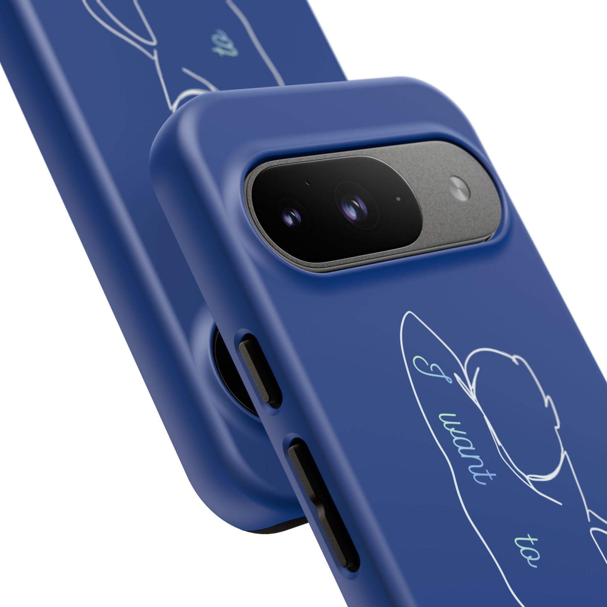 A slim, protective phone case with a quiet, hand-drawn design that reads like a private reminder. The black dual-layer shell and TPU silicone liner lock in shock absorption while a full 3D wrap keeps the art intact. Subtle cyan lettering and minimalist linework create a calming contrast against the matte or glossy black background — a case that looks understated in a crowded bag but speaks softly when you pull it out. Weather-resistant inks and certified materials mean the piece stays visually sharp over time while clear port openings preserve everyday usability. Tailored for grown-up users who want protection without shouting, it balances everyday toughness with gentle, contemplative style.