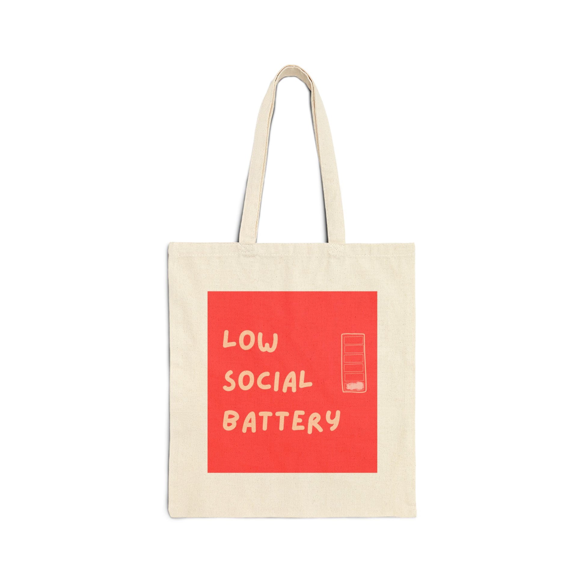 Low Social Battery Cotton Canvas Tote Bag | Eco-Friendly, Trending Gift, Everyday Use, Shopping Bag, Funny Tote